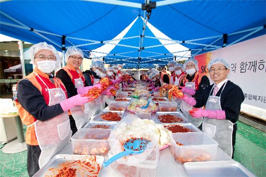 SK브로드밴드는 2일 서울시 양재동에 있는 서초구립양재노인종합복지관에서 경영지원부문 임직원 50여명이 참여한 가운데 ‘사랑의 김치 나눔’ 봉사활동을 펼쳤다고 3일 밝혔다.