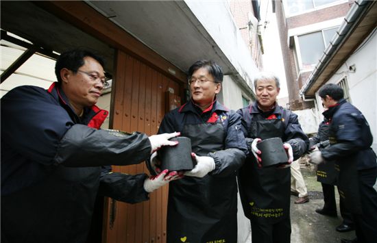 민병규 대표를 포함한 임직원 50여명이 5000장의 연탄과 난방 기구를 무의탁 독거노인 가정에 직접 배달했다.