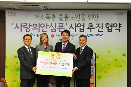 CDMA 디지털 무선통신 기업인 퀄컴은 서울시·서울사회복지공동모금회·KT·매크로아이 등과 함께 저소득층 홀몸 노인들을 위한 복지안전 서비스 ‘사랑의 안심폰’ 프로젝트를 확대 실시한다고 3일 발표했다.