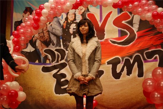 윤화는 5일 방송하는 SBS E!TV '막내반란시대' 중 2AM의 진운, FT아일랜드의 승현, 유키스의 동호, 마이티마우스의 쇼리J와 벌인 '여장 대결'에서 긴 웨이브 가발을 쓴 채 미니스커트를 입고 남자보다 예쁜 여자로 변신해 눈길을 끌었다.