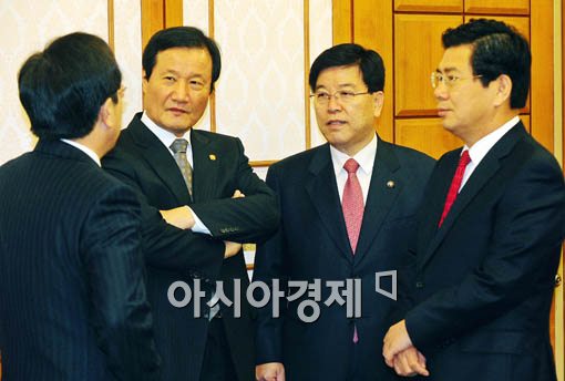 [아시아경제 윤동주 기자] 7일 오전 국회에서 열린 2010년도 경제운용방향 당정협의에 윤증현 기획재정부 장관과 김성조 한나라당 정책위장등 당정 경제 관련 인사들이 참석한 가운데 열리고 있다.