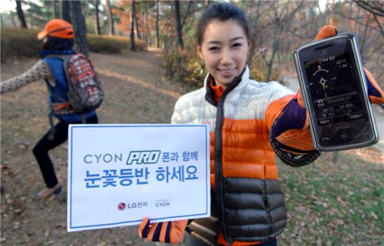 LG전자가 등산·골프 등 레저 기능을 특화시킨 2세대(G) 풀터치폰 ‘프로폰(LG-SB210)’ 출시를 기념해 아웃도어 브랜드 라푸마와 ‘프로들의 눈꽃 산행’ 이벤트를 공동 개최한다고 7일 밝혔다.