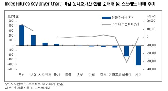 우리투자증권에 따르면, 전날 유입된 대규모의 비차익 매수세는 특정 증권사 창구를 중심으로 유입돼 특정 인덱스 자금의 현물 스위칭이 대부분이었던 것으로 파악된다.
