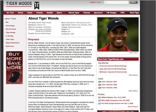 온라인 시장조사업체 컷스코어의 앤드루 립스맨 대변인은 “운동선수의 홈페이지 방문객 수가 그리 많지 않다”며 “10월 우즈의 홈페이지 방문객 수는 5만1000명에 불과했다”고 전했다.