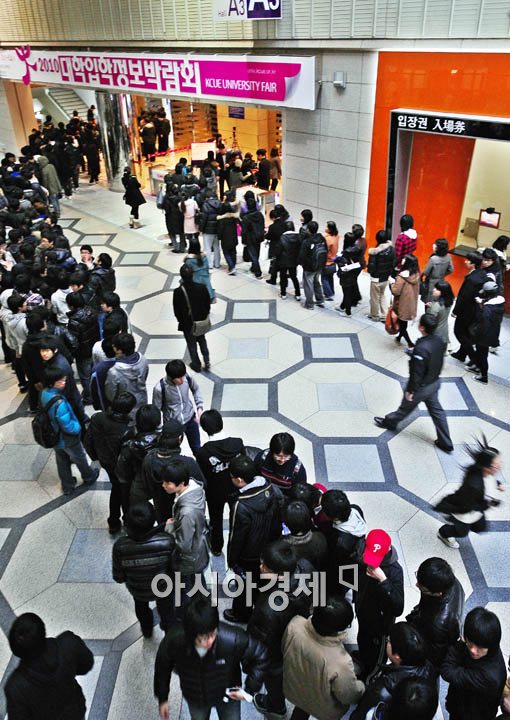 [아시아경제 윤동주 기자] 11일 오전 서울 삼성동 코엑스에서 열린 대학입학정보박람회에 많은 수험생들과 학부모들의 발길이 이어져 만원사례를 이루고 있다.