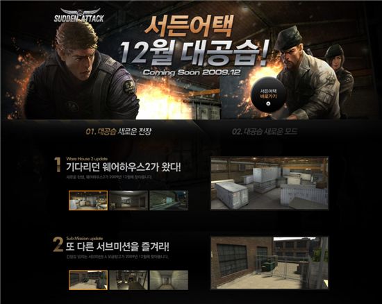 게임하이는 이번 티저사이트를 통해 서든어택 사용자들에게 가장 사랑 받으며 일명 '국민맵'으로 불리는 '웨어하우스'의 두 번째 버전을 공개했다. 기존 웨어하우스의 장점을 살려 제작된 웨어하우스2에서 사용자들은 더욱 박진감 넘치는 게임을 즐길 수 있다.