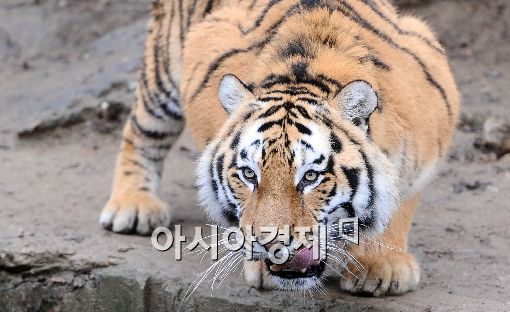 [아시아경제 이재문 기자] 11일 오후 서울동물원에서 열린 '따뜻한 서울동물원 겨울여행' 축제에서 호랑이가 먹이를 받아먹고 있다. 서울동물원은 동물들을 위한 난방시설을 물론 관람객을 위한 동물해설가 셔틀버스도 운행한다.