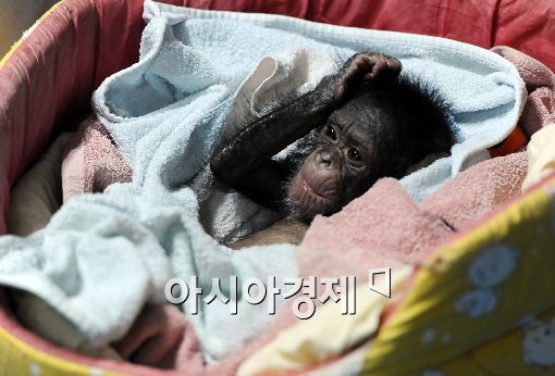 [아시아경제 이재문 기자] 11일 오후 서울동물원에서 열린 '따뜻한 서울동물원 겨울여행' 축제에서 아기 침팬지가 관객들을 반기고 있다. 서울동물원은 동물들을 위한 난방시설을 물론 관람객을 위한 동물해설가 셔틀버스도 운행한다.