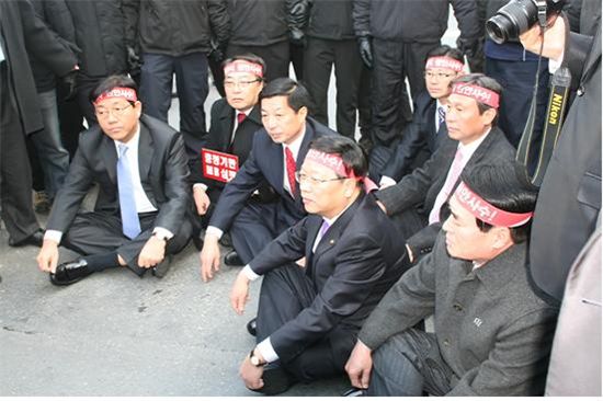 이재선 자유선진당 의원 등 당원들 녹화 못하게 연좌시위에 ‘계란’ 투척