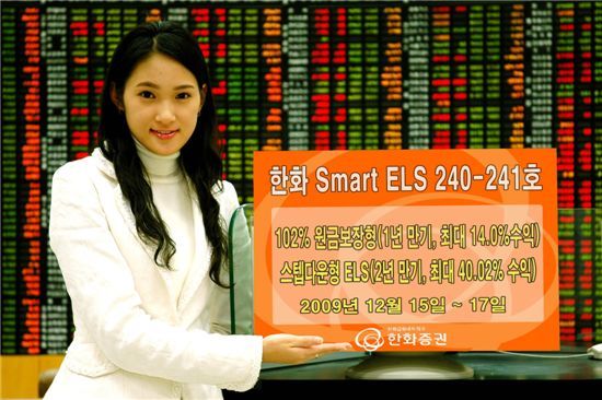 [아시아경제 김은별 기자]한화증권은 오는 15일부터 3일간 1년 만기 최대 14.0% 수익을 추구하는 원금보장형 ELS 와 2년 만기 최대 40.02%(연 20.01%) 스텝다운형 ELS를 판매한다.