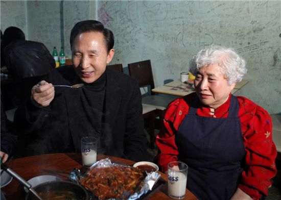 이 대통령은 최근들어 '서민'이라는 말을 입에 달고 있다. 주요 일정을 소화하면서 매번 서민의 어려움에 대한 따뜻한 시선과 함께 민생안정을 국정 최우선 과제를 다루겠다는 의지를 숨기지 않고 있다. 지난 12일 대선 당시 선거광고에 욕쟁이 할머니로 나왔던 강종순 씨의 포장마차를 깜짝 방문한 것이 대표적이다.