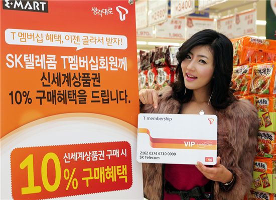 [아시아경제 김진오 기자]SK텔레콤(대표 정만원)은 이마트와 제휴를 통해 멤버십 우수고객을 대상으로 이마트에서 신세계 상품권 구매시 10% 할인 혜택을 제공한다고 16일 밝혔다.