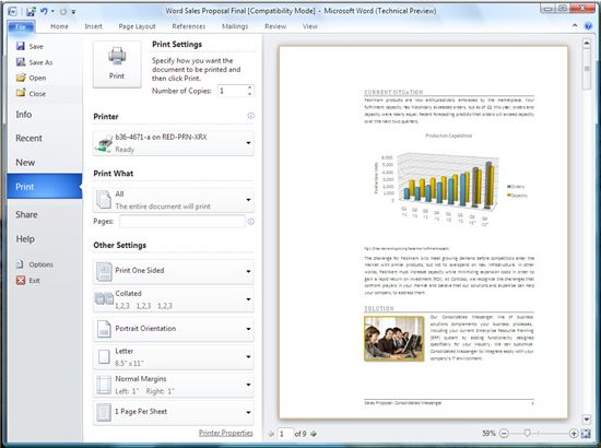 MS에 따르면 오피스 2010에 처음 도입된 '오피스 백스테이지' 기능은 기존 버전의 '파일' 메뉴와 비슷한 구성을 가지고 있지만, 관련 작업을 한 화면에 표시하기 때문에 문서를 더욱 편리하게 다룰 수 있게 해준다.