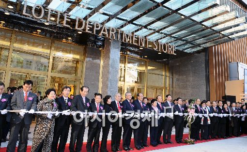[아시아경제 이재문 기자] 롯데백화점이 17일 오전 창립 30주년을 맞아 30번째 백화점으로 부산시 중구 중앙동에 롯데백화점 부산 광복점을 개점했다. 신동빈 롯데그룹 부회장을 비롯한 주요 내빈들이 테이프커팅을 하고 있다.