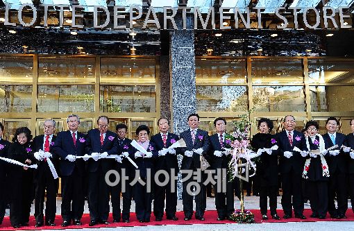 [아시아경제 이재문 기자] 롯데백화점이 17일 오전 창립 30주년을 맞아 30번째 백화점으로 부산시 중구 중앙동에 롯데백화점 부산 광복점을 개점했다. 신동빈 롯데그룹 부회장을 비롯한 주요 내빈들이 테이프커팅을 하고 있다.