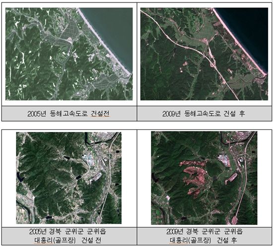 지리정보원은 이에 지난 2005년 구축된 강원·경북 지역 국토모니터링 결과와 올해 사업결과를 비교한 결과 총 130.33㎢의 땅이 개발됐다고 밝혔다. 이는 여의도 면적의 15.4배 가량 되는 수치다.