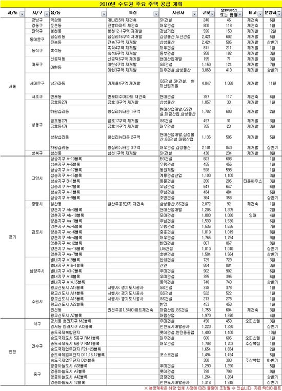 이번 조사 내용에는 보금자리주택 사전예약 물량인 3만9000가구와 인천도시개발공사, 경기도시공사가 공급예정인 3711가구가 포함된다. 기타 LH, SH공사 공급계획은 내년 3월 공급계획이 발표되기 때문에 해당 물량에서는 제외됐다.
