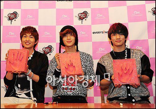 [아시아경제 박성기 기자]그룹 샤이니가 18일 오후 2시 서울 명동 SM에브리싱 노래방 오픈식에서 핸드프린팅을 하고 있다.