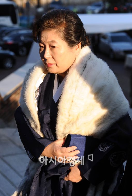 [아시아경제 이재문 기자] 18일 오후 서울 정동제일교회에서 열린 정몽윤 현대해상화재보험 회장의 장녀 정이씨와 김인규 KBS사장의 장남 현강씨 결혼식에 현정은 현대그룹 회장이 참석하고 있다.