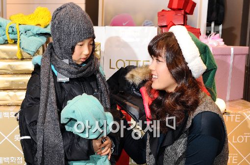 [아시아경제 이재문 기자] 프로골퍼 미셸위가 21일 오전 서울 소공동 롯데백화점 본점에서 열린 소년소녀가장돕기 사랑의쇼핑 행사에서 아이들에게 옷을 선물하고 있다. 미셸위는 이번 행사에 전남 장흥군 소년·소녀 가장 9명을 초청해 쇼핑을 같이하며 크리스마스 선물을 전달했다.