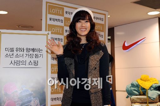 [아시아경제 이재문 기자] 프로골퍼 미셸위가 21일 오전 서울 소공동 롯데백화점 본점에서 열린 소년소녀가장돕기 사랑의쇼핑 행사에서 손을 흔들고 있다. 미셸위는 이번 행사에 전남 장흥군 소년·소녀 가장 9명을 초청해 쇼핑을 같이하며 크리스마스 선물을 전달했다.