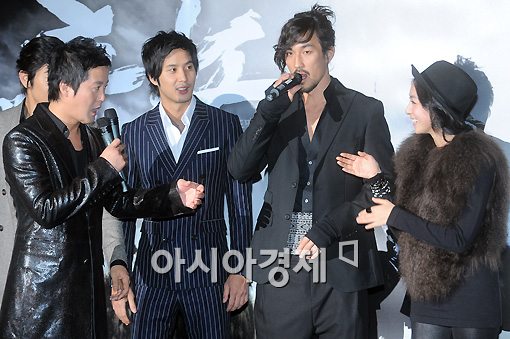[아시아경제 이기범 기자]배우 공형진과 한정수가 21일 오후 서울 영등포 CGV에서 진행된 KBS2 드라마 '추노' 제작발표회에서 마이크 테스트를 하고 있다.