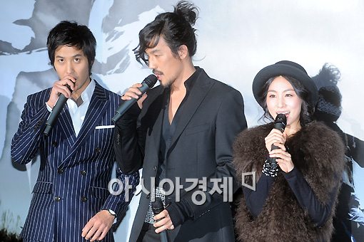 [아시아경제 이기범 기자]배우 김지석과 한정수가 21일 오후 서울 영등포 CGV에서 진행된 KBS2 드라마 '추노' 제작발표회에서 마이크 테스트를 하고 있다.
