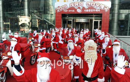 [아시아경제 이재문 기자] 최경환 지식경제부 장관이 21일 오후 서울 명동 포스트타워에서 열린 '사랑의 산타 집배원' 발대식에서 산타집배원들과 메리크리스마스를 외치고 있다.
