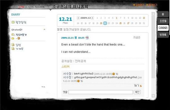 규현은 21일 6시25분께 자신의 미니홈피에 'Even a beast don't bite the hand that feeds one...I can not understand...'라는 짧은 글을 올렸다.