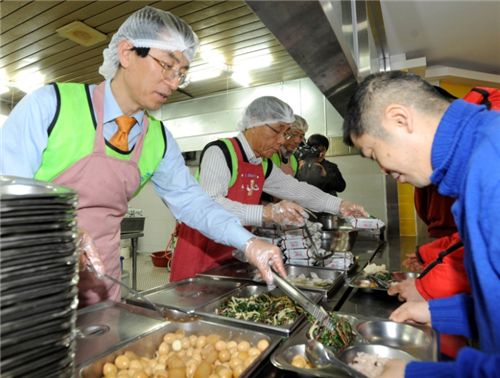 [아시아경제 장용석 기자] 이용걸 기획재정부 제2차관이 22일 재정부 복권위원회 소속 행복공감봉사단원 등과 함께 서울 구산동 소재 사회복지시설인 '은평천사원'을 찾아 함께 원생들의 식사 준비와 배식 등의 봉사활동을 하고 있다.