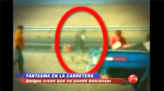 최근 칠레의 한 TV 방송국이 끔찍한 교통사고 현장에서 찍힌 사진 속에 사망자의 유령처럼 보이는 이미지가 잡혀 관심을 끌고 있다고 소개했다.