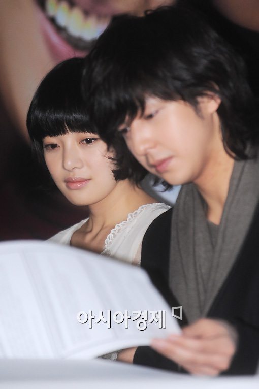 [아시아경제 이기범 기자]배우 황보라(왼쪽)와 슈퍼주니어 김기범이 23일 오전 서울 명동 롯데시네마에서 열린 영화 '주문진' 제작보고회에서 대본을 보고 있다.