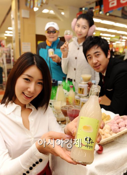 [아시아경제 이재문 기자] 국순당이 23일 롯데마트 서울역점에서 열린 '연령대별 송년모임 막걸리 제안' 행사에서 다양한 종류의 막걸리를 선보이고 있다.
