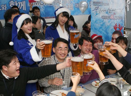 하이트맥주(대표 김지현)는 지난 22일 산타 복장의 도우미들이 경기도 기흥에 위치한 아모레퍼시픽 기술연구원을 방문해 '쿨하게 쏜다! 하이트 직장인 氣 살리기 캠페인'을 진행했다고 23일 밝혔다.