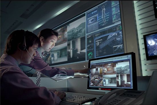 KT텔레캅의 영상보안서비스 '텔레캅-아이'는 고객이 영상으로 현장을 확인할 수 있으며 이상신호 발생시 경고조명과 함께 관제실에서 영상을 확인해 신속하게 대응할 수 있는 장점이 있다.