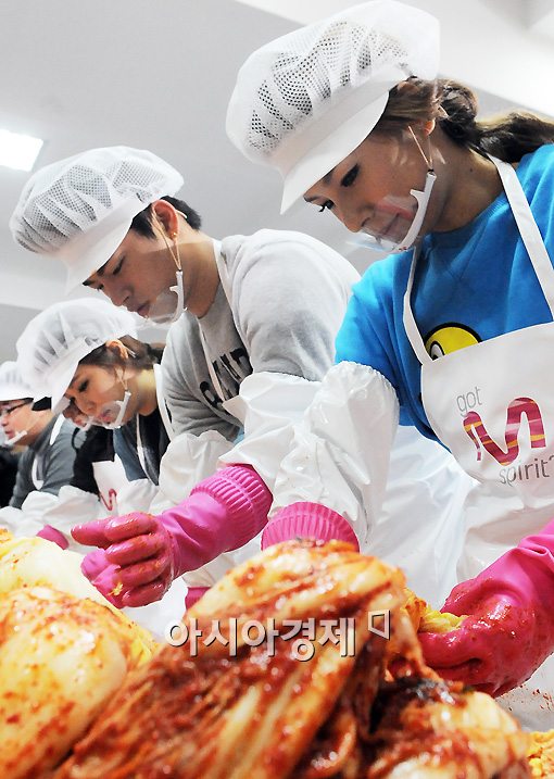 [아시아경제 이기범 기자]가수 채연과 서인국이 23일 오후 서울 합정동 지역아동센터 마리스타에서 열린 '음악인과 함께하는 김장 나눔행사'에 임하고 있다.