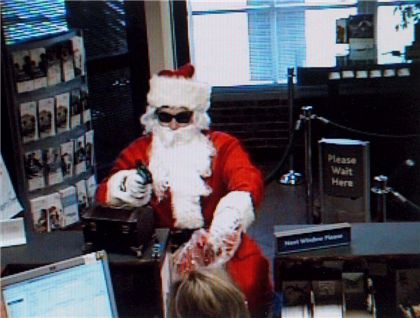 한 목격자는 “머리 끝에서부터 발 끝까지 산타 복장을 하고 까만 선글라스까지 쓴 강도가 권총을 꺼내 들고 행원들에게 작고 빨간 배낭에 돈을 넣으라고 소리쳤다”고 말했다.