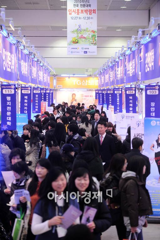 [아시아경제 윤동주 기자] 27일 서울 강남구 삼성동 코엑스에서 열린 '2010학년도 전문대 입시홍보 박람회'에 많은 수험생들이 몰려 정보를 얻고 있다.