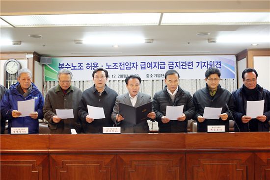 김기문 중소기업중앙회 회장은 "중소기업계는 노사정 합의 정신을 살린다는 차원에서 타임오프제 도입 등 일부 양보를 한 것"이라며 "하지만 복수노조 허용과 노조전임자 급여지급 금지 등 법대로 시행하자는 것이 원칙"이라고 말했다.