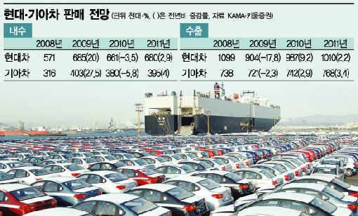 $pos="C";$title="(표)";$txt="";$size="510,309,0";$no="200912291053539933150A_3.jpg";@include $libDir . "/image_check.php";?>[아시아경제 손현진 기자]현대ㆍ기아자동차 그룹이 내년을 세계 5대 자동차 브랜드로 자리매김하는 원년으로 삼을 계획이다. 올해가 도약의 발판을 다지는 시기였다면 내년은 본격적인 움직임에 나서는 시기인 셈.