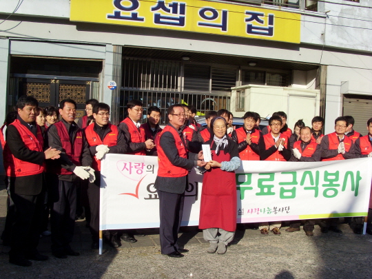 이날 무료급식은 롯데건설 윤리사무국이 '사랑의 경매' 이벤트를 통해 마련한 기금으로 진행됐다.