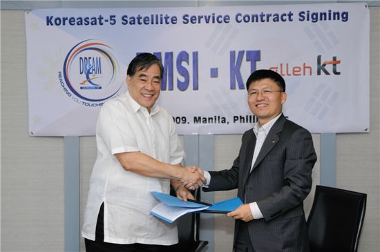 [아시아경제 김진오 기자] KT(대표 이석채)는 필리핀 제1의 위성방송사업자인 PMSI(Philippine Multi-Media System Inc.)사와 무궁화위성 5호 국제빔 중계기 3기에 대한 임대계약을 체결하고 새해 1월부터 임대서비스를 제공한다고 30일 밝혔다.