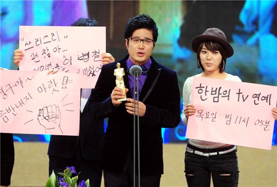 이날 '연예대상'에는 강호동, 유재석, 김구라, 김종국, 이경규, 김용만, 이효리, 김정은, 노홍철, 신봉선, 양정아, 김수로, 컬투, 김국진 등이 참석해 자리를 빛냈다.