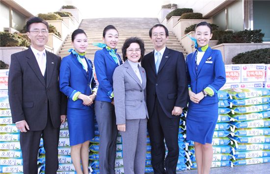 [아시아경제 김혜원 기자] 에어부산(대표 김수천)이 31일 강서구청 광장에서 '사랑의 쌀 나눔식'을 가졌다. 지난 18일 개최한 '행복나눔 자선바자회' 수익금으로 강서구 소재 독거노인 100세대에 쌀 100포와 라면 100박스를 지원했다.