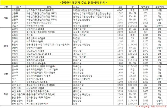 [아시아경제 오진희 기자, 강정규 기자]경인년 새해에는 전국에서 1000가구 이상 대단지 아파트 88곳, 12만4465가구가 분양에 나선다.