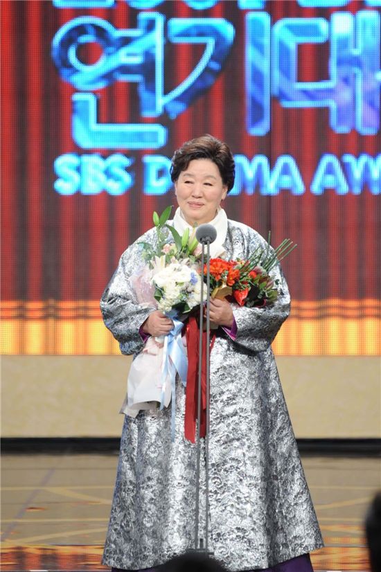 [아시아경제 고재완 기자]'찬란한 유산' 반효정이 31일 서울 등촌동 SBS공개홀에서 열린 '2009 SBS 연기대상'에서 공로상을 수상했다.