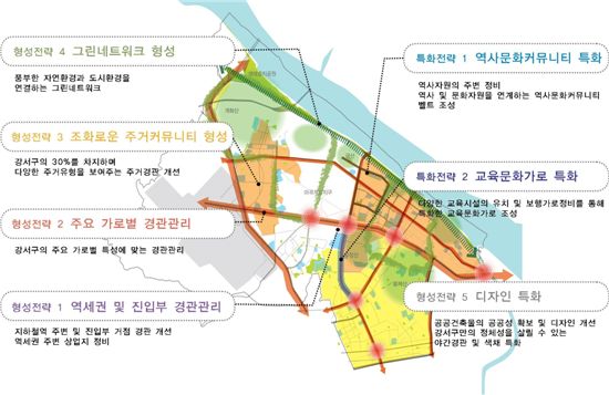 $pos="C";$title="";$txt="5개의 형성전략과 2개의 특화전략을 담은 ‘강서구 도시디자인 기본계획’ 구상도
