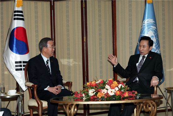 한편, 이 대통령과 반 총장은 G20 정상회의 유치를 계기로 한국과 유엔이 지속적인 협력을 해나가야 한다는데 공감하고 앞으로 주요 국제현안에 대해 긴밀히 협의하기로 했다.