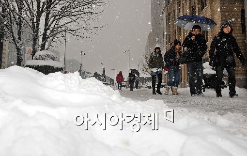 [아시아경제 이재문 기자] 서울 경기지역에 폭설이 내린 가운데 새해 첫 출근인 4일 오전 서울 광화문 네거리에서 시민들이 출근길을 서두르고 있다.
