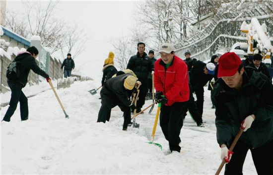 [아시아경제 박종일 기자]금천구(구청장 한인수)는 기록적인 폭설이 내린 4일 민원부서와 필수요원을 제외한 912명의 전 직원이 참여하는 제설작업을 펼쳤다.